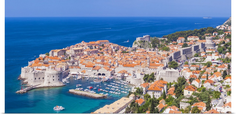 <p>Aerial panorama of Old Port and Dubrovnik Old town, Dubrovnik, Dalmatian Coast, Croatia</p>