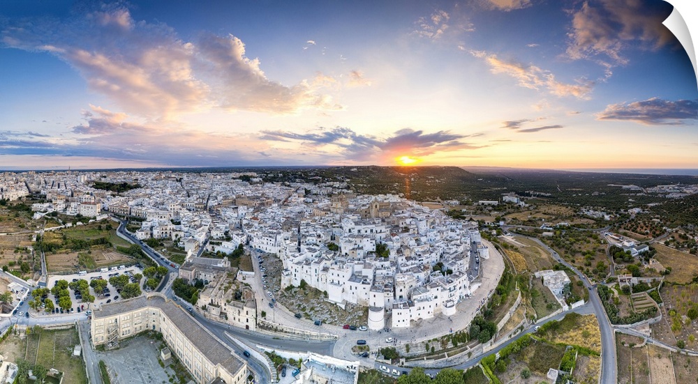 <p>Aerial panoramic of Ostuni at sunset, province of Brindisi, Salento, Apulia, Italy, Europe</p>