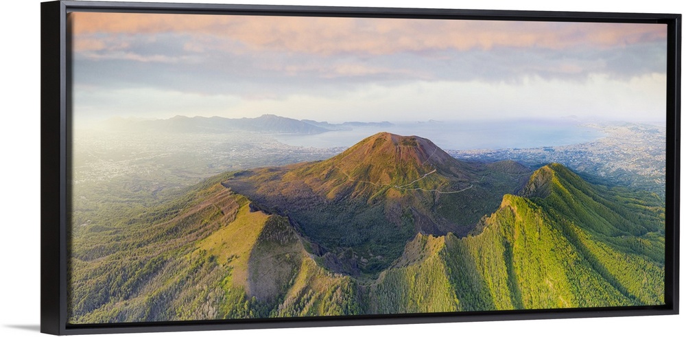 <p>Aerial panoramic of Vesuvius volcano at sunrise, Naples, Campania, Italy, Europe</p>