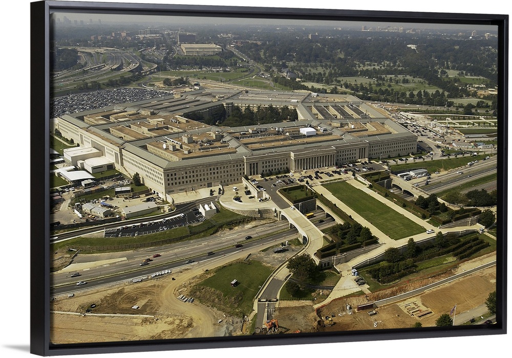 <p>Aerial photograph of the Pentagon with the River Parade Field in Arlington, Virginia.</p>