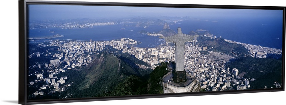 <p>Giant, landscape photograph of the back of Christ the Redeemer statue overlooking Rio de Janeiro, Brazil.</p>