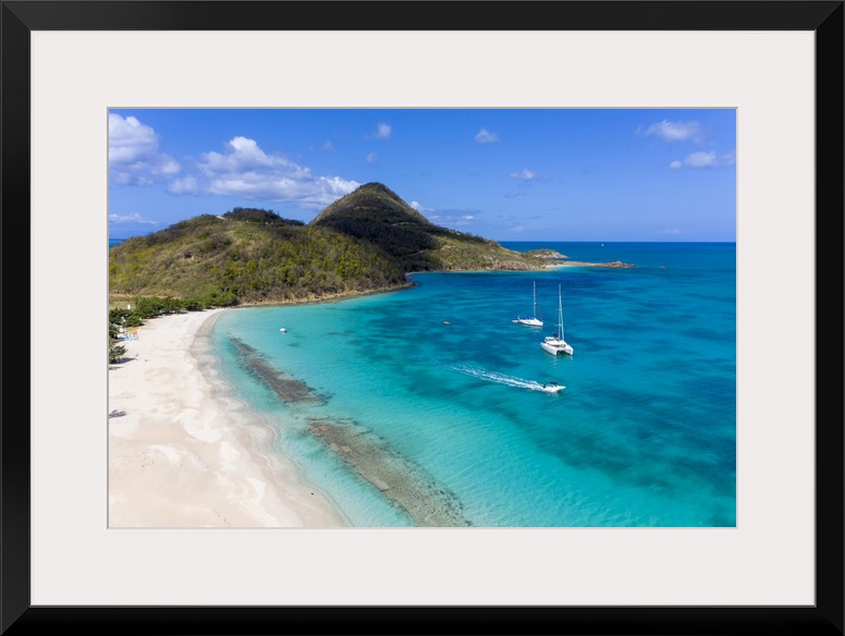 <p>Aerial view by drone of Hermitage Bay and Pearns Point, Antigua, Antigua and Barbuda, Leeward Islands, West Indies,</p>