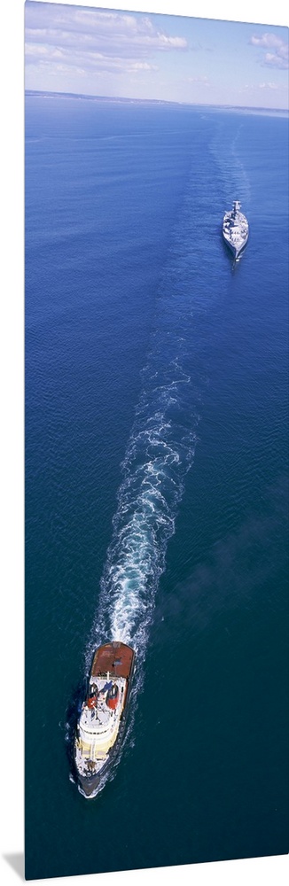 <p>Aerial view of a battleship being towed in the sea, USS Iowa (BB-61), Rhode Island, USA</p>
