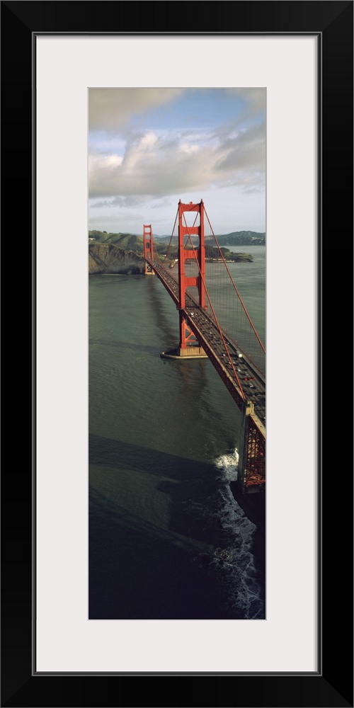 <p>This tall vertical panoramic picture is taken from above the Golden Gate Bridge looking down the road as it crosses onto land.</p>