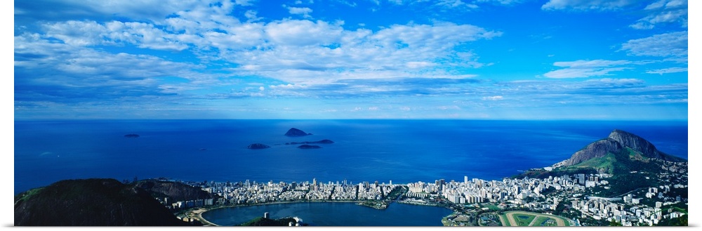 <p>Aerial view of a city at coast, Rio De Janeiro, Brazil</p>