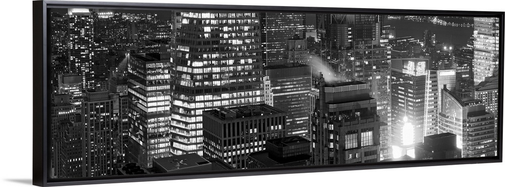 <p>Panoramic photograph of lit up buildings in the "Big Apple."</p>