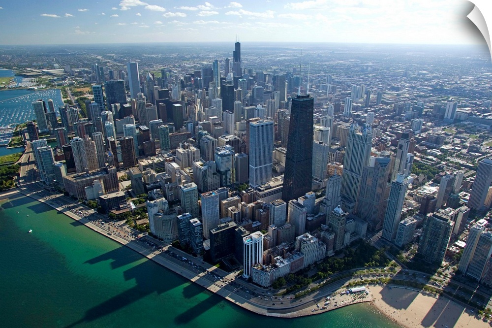 <p>Aerial view of a city, Oak Street Beach, Lake Michigan, Chicago, Cook County, Illinois, USA</p>