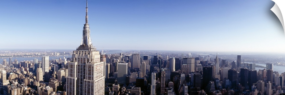 <p>A high angle photograph of the NYC skyline with the Empire State building in the foreground towering over the skyscrapers.</p>