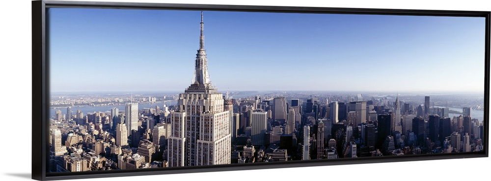 <p>A high angle photograph of the NYC skyline with the Empire State building in the foreground towering over the skyscrapers.</p>