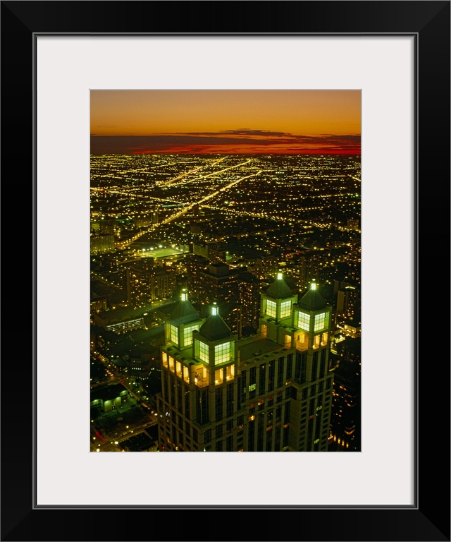 <p>Canvas photo art of a cityscape seen from above lit up at sunset.</p>