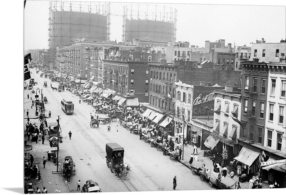<p>Aerial view of a festival on 1st Avenue in Little Italy, New York City. Photograph, n.d.</p>