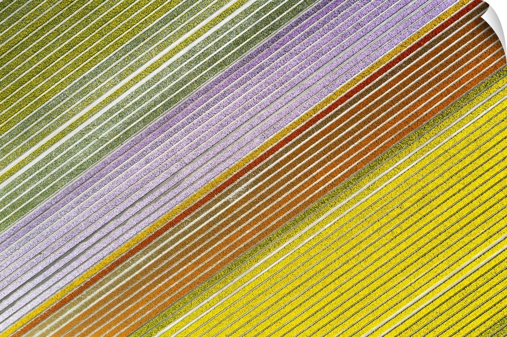 <p>Aerial view of a multicolor tulips field (Warmenhuizen, Schagen municipality, Dutch, North Holland, Netherlands.</p>