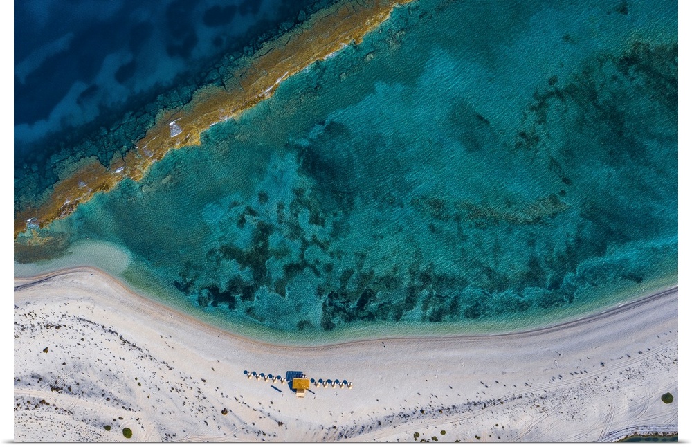 <p>Aerial view of a secluded spectacular beach with corals in Lefkada in Greece.</p>