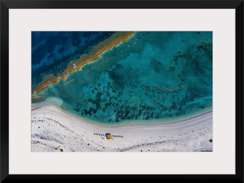 <p>Aerial view of a secluded spectacular beach with corals in Lefkada in Greece.</p>