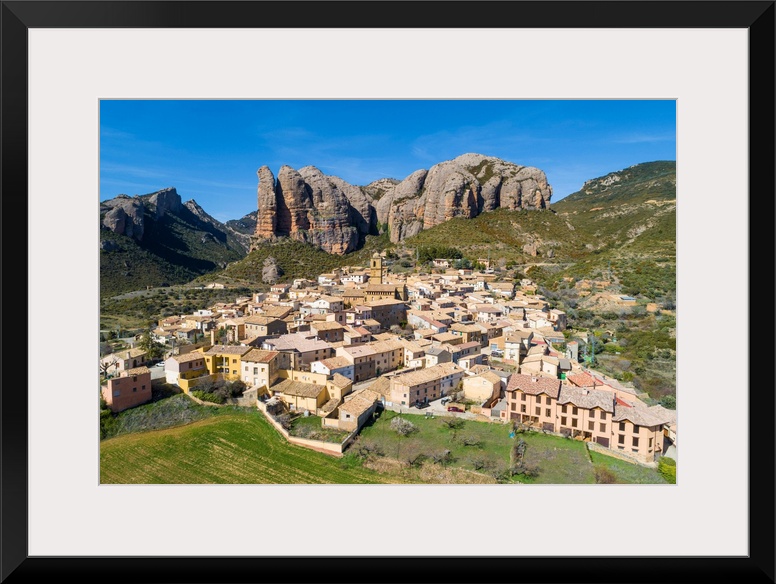<p>Aerial View Of Aguero Village. Aguero, Huesca, Aragon, Spain</p>