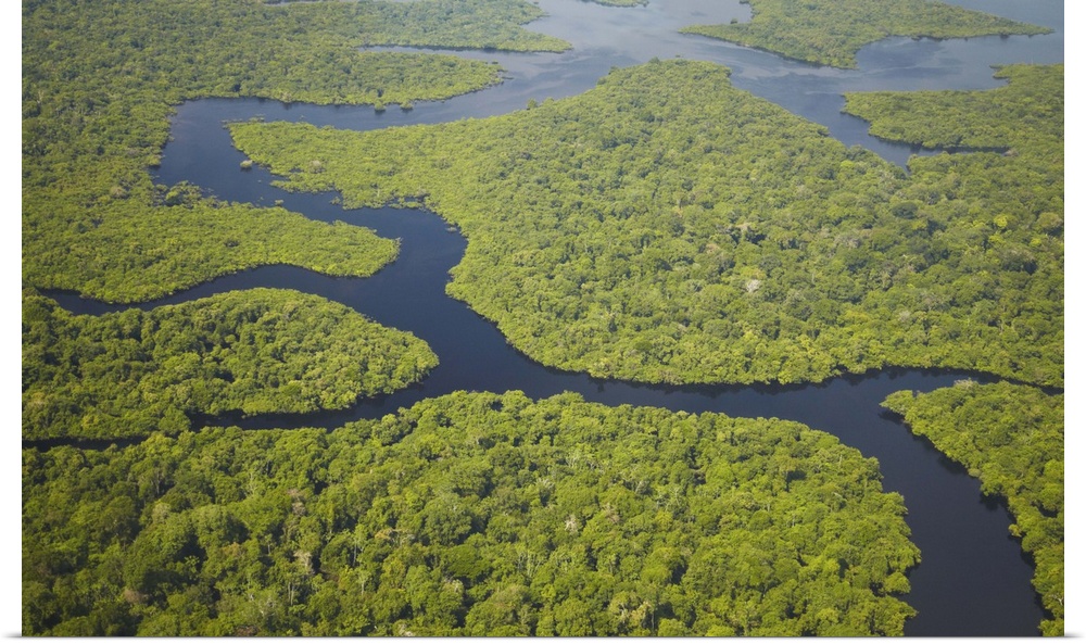 <p>Aerial view of Amazon Rainforest and tributary of Rio Negro, Manaus, Amazonas, Brazil</p>