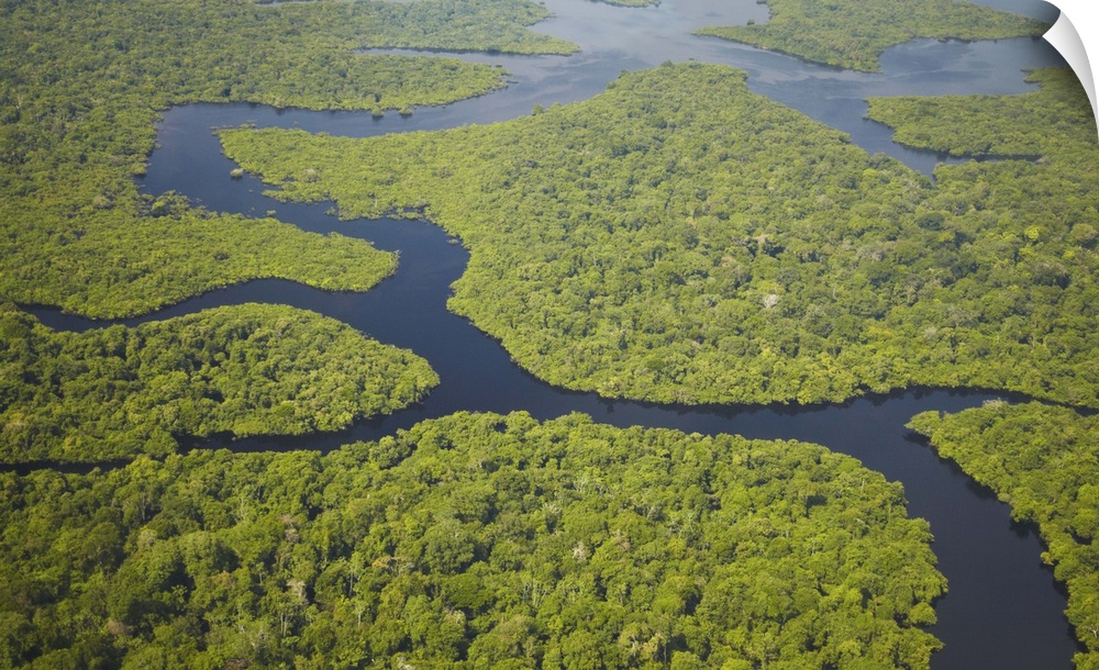 <p>Aerial view of Amazon Rainforest and tributary of Rio Negro, Manaus, Amazonas, Brazil</p>