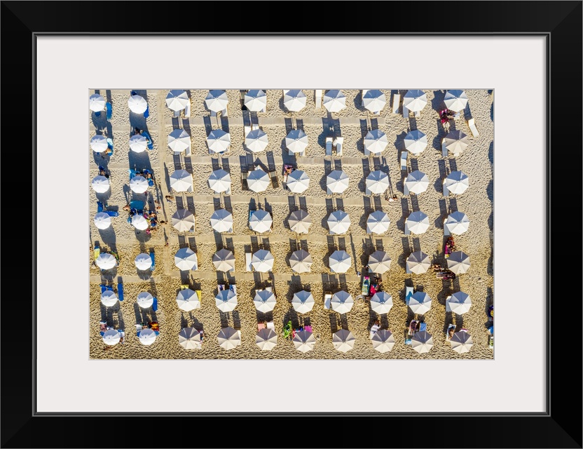 <p>Aerial view of beach umbrellas pretty well aligned in Lefkada in Greece.</p>