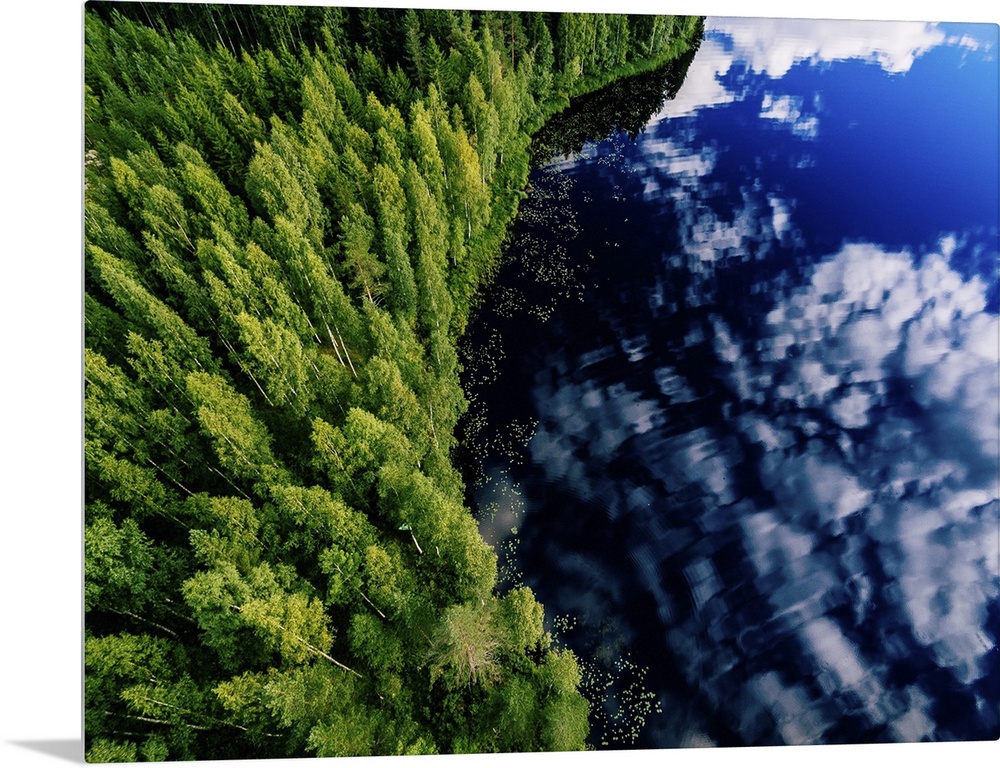 <p>Aerial View Of Blue Lake And Green Forests On A Sunny Summer Day In Finland</p>