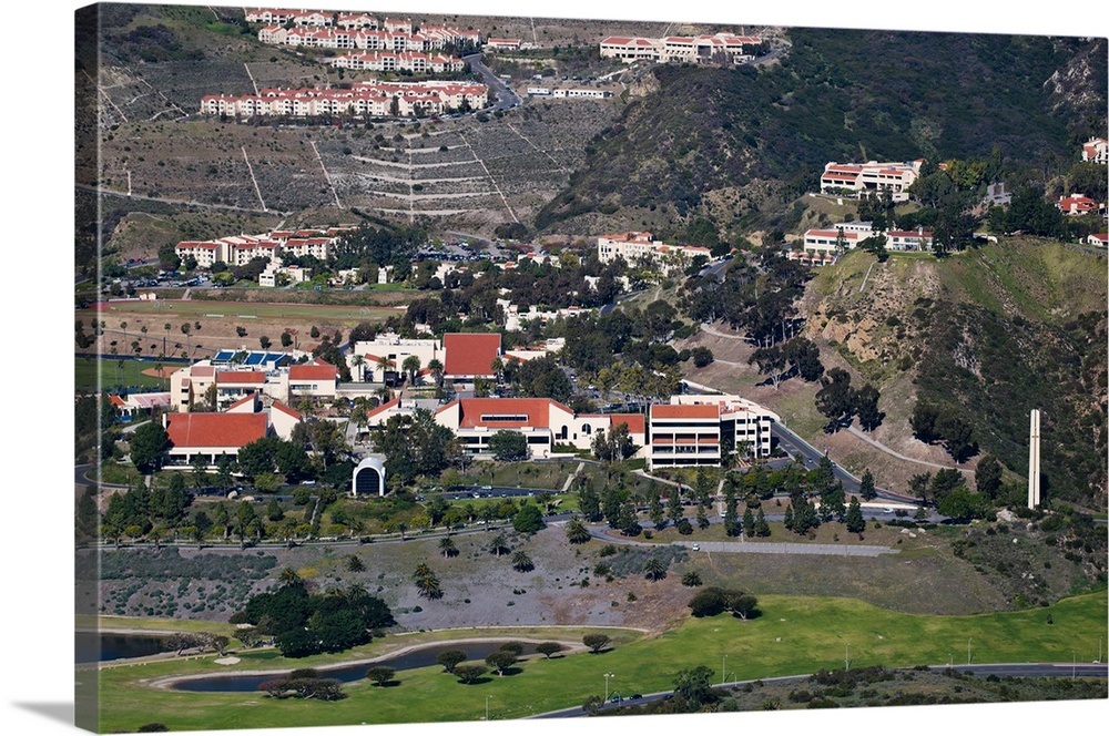 <p>Aerial view of buildings on a hill, Pepperdine University, Malibu, Los Angeles County, California, USA</p>