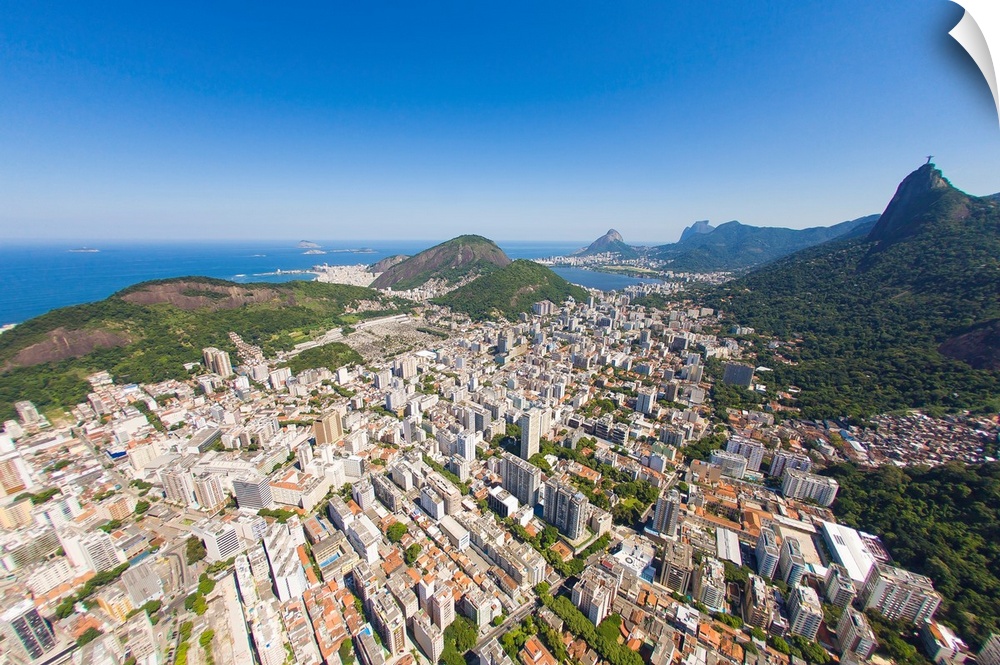 <p>Aerial view of Christ the Redeemer statue overlooking the city of Rio de Janeiro, Brazil.</p>