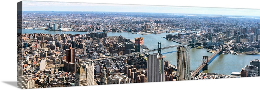 <p>Aerial view of cityscape, Brooklyn Bridge, Manhattan, New York City, New York State, USA</p>