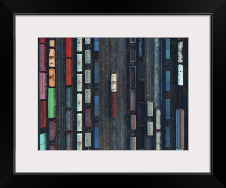 <p>Aerial View Of Colorful Freight Trains On The Railway Station</p>