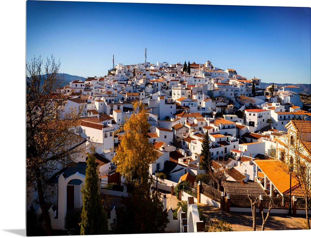 <p>Aerial view of comares village, one of the highest pueblo blancos in andalucia (739 metres above sea level), Malaga Province, andalucia, Spain.</p>