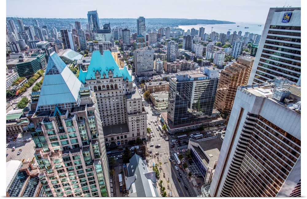 <p>Aerial view of downtown Vancouver in British Columbia, Canada.</p>