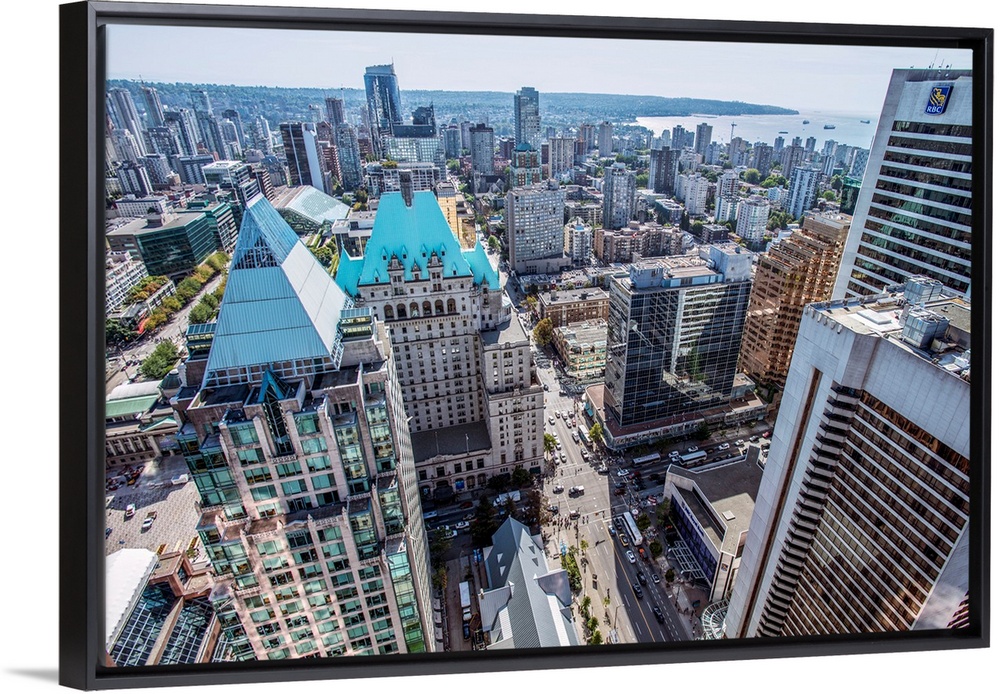 <p>Aerial view of downtown Vancouver in British Columbia, Canada.</p>