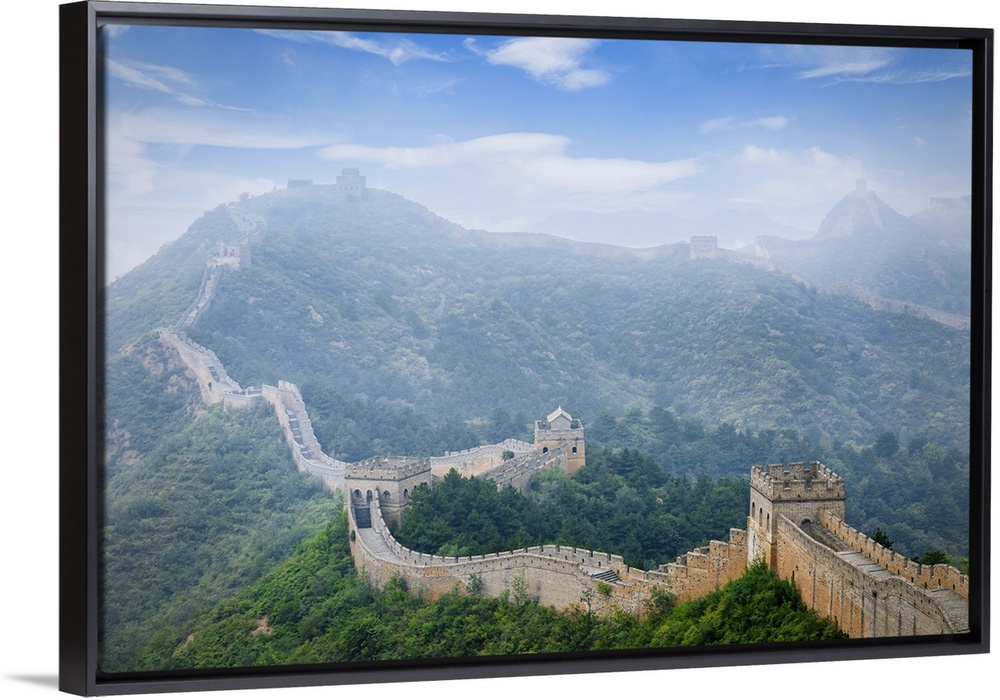 <p>Aerial view of great wall of China in fog in Jinshanling, Hebei Province, China.</p>