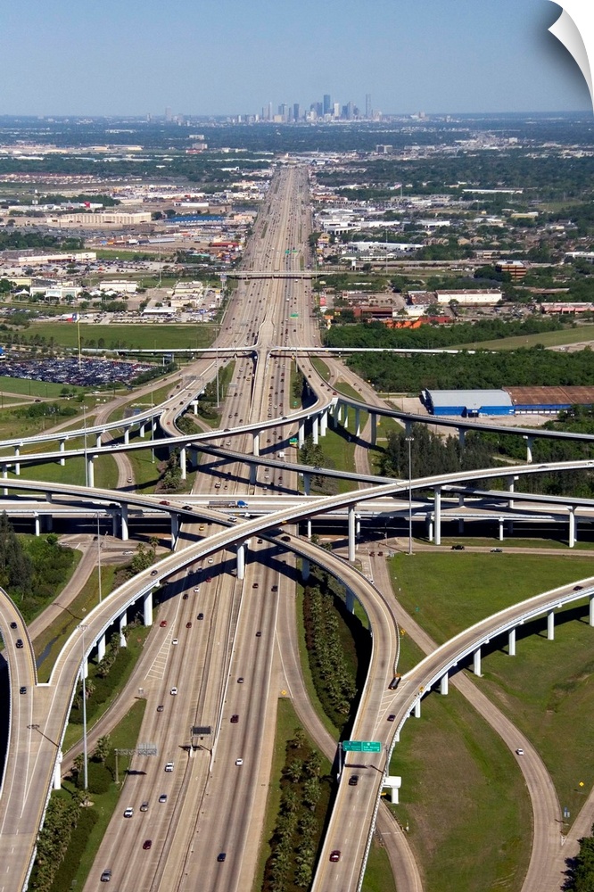 <p>Aerial view of the freeway interchange of Interstate 45 and the State Highway Beltway 8 in Houston, Texas.</p>