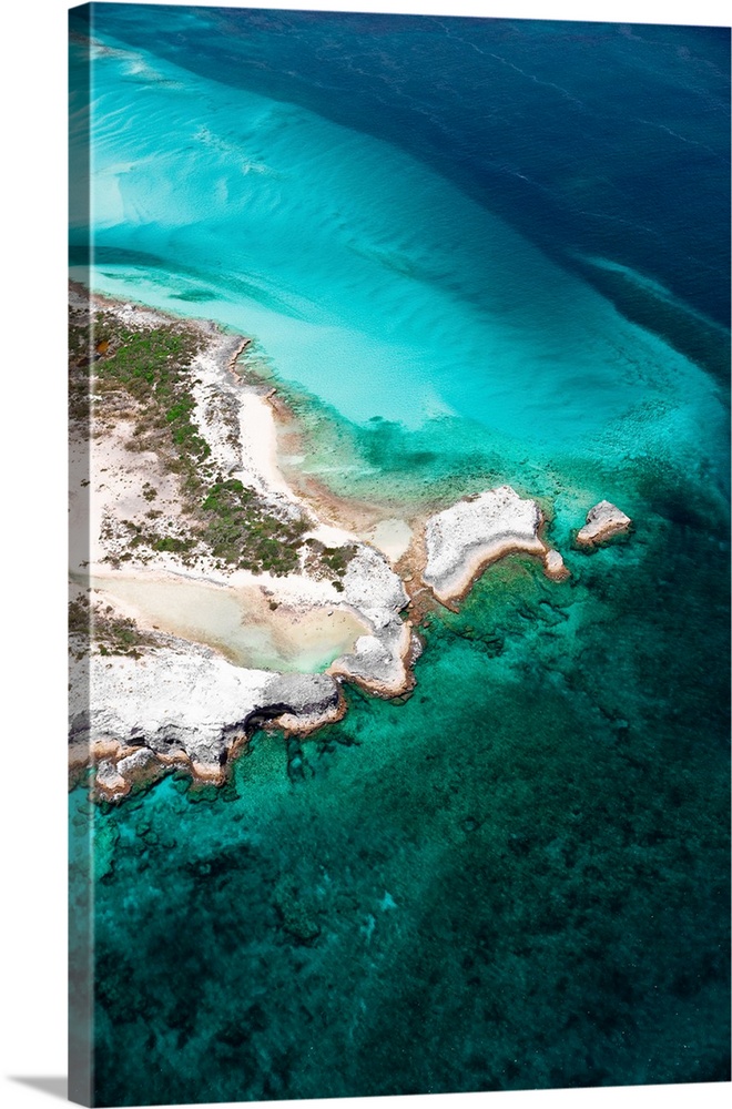 Aerial view of island in Caribbean Sea, Great Exuma Island, Bahamas