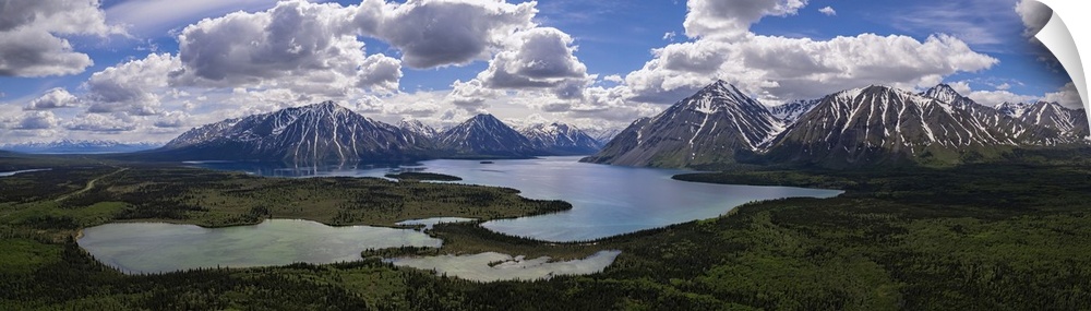 <p>Spectacular aerial view of Kathleen Lake and the surrounding mountains on a beautiful, summer day near Haines Junction, Yukon, Canada</p>