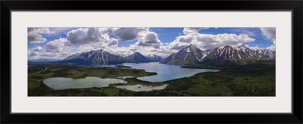 <p>Spectacular aerial view of Kathleen Lake and the surrounding mountains on a beautiful, summer day near Haines Junction, Yukon, Canada</p>