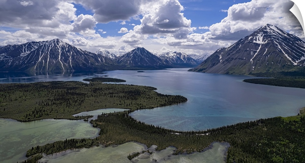 <p>Spectacular aerial view of Kathleen Lake and the surrounding mountains on a beautiful, summer day near Haines Junction, Yukon, Canada</p>