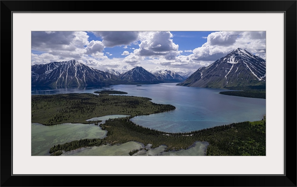 <p>Spectacular aerial view of Kathleen Lake and the surrounding mountains on a beautiful, summer day near Haines Junction, Yukon, Canada</p>