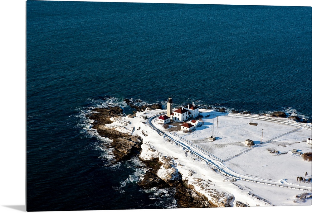 <p>Aerial view of lighthouse on Aquidneck Island, Newport, Rhode Island, USA</p>