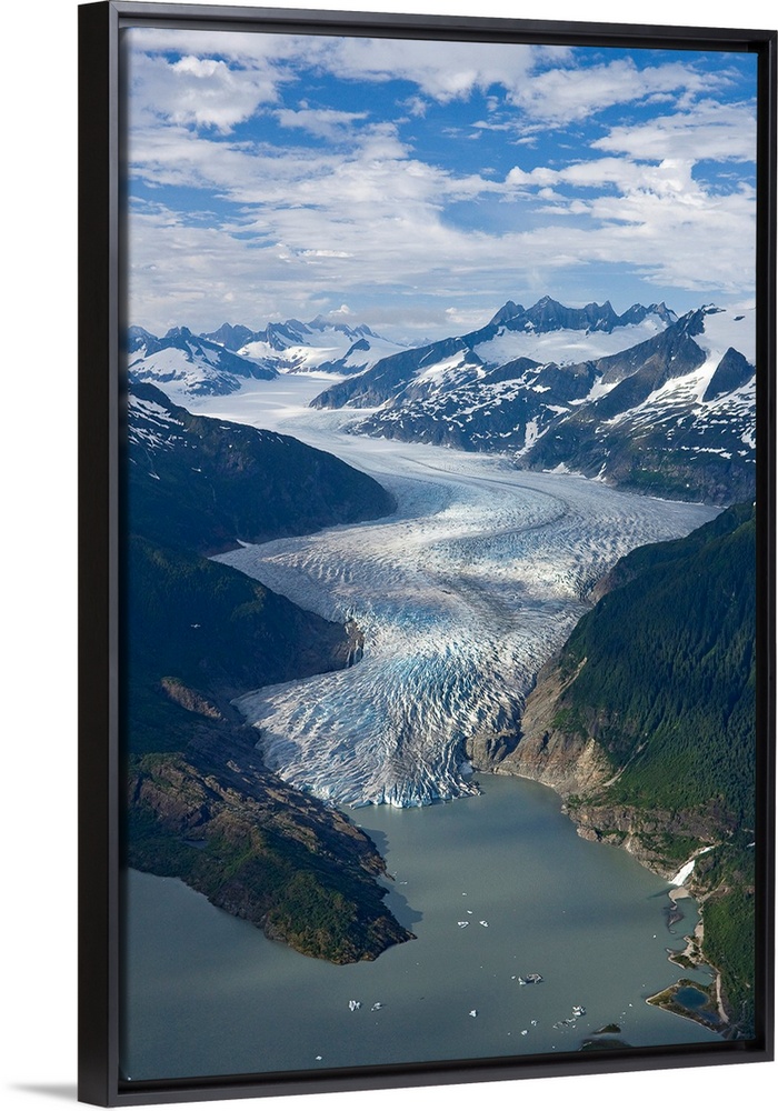 <p>Mendenhall Glacier winds its way down from the Juneau Ice Field to Mendenhall Lake, where the face of the glacier terminates, Tongass Forest, Juneau, Alaska.</p>