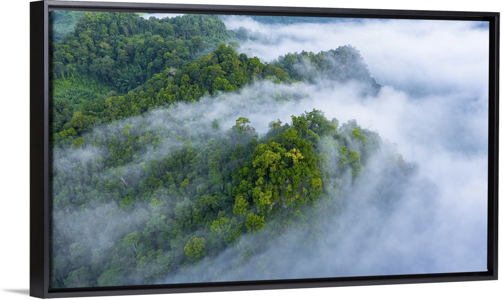 <p>Aerial view of morning mist at tropical rainforest mountain, background of forest and mist, aerial top view background forest.</p>