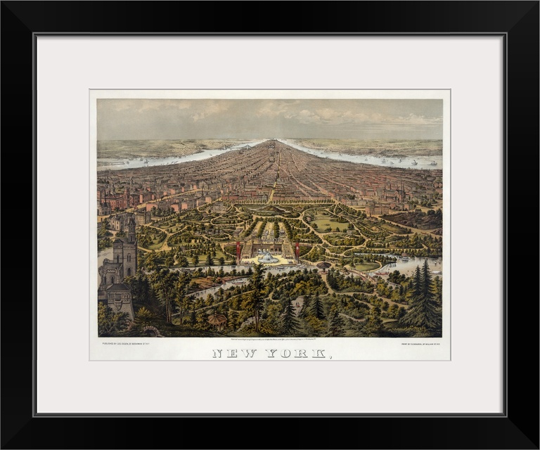 <p>Aerial view of New York City, looking south over Central Park. Lithograph by George Schlegel, c1873.</p>