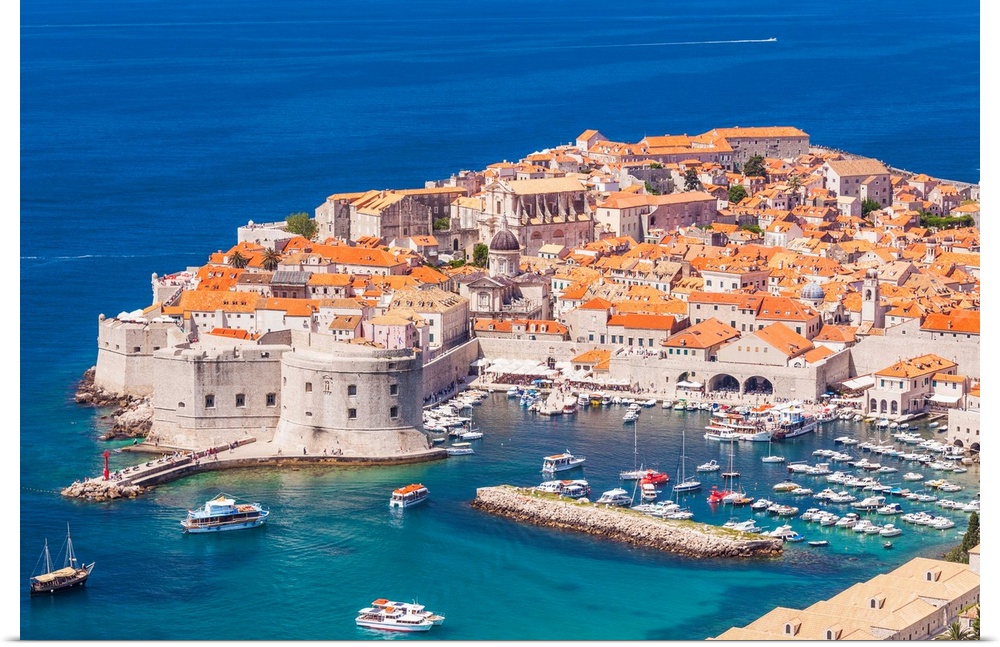 <p>Aerial view of Old Port and Dubrovnik Old town, Dubrovnik, Dalmatian Coast, Croatia</p>