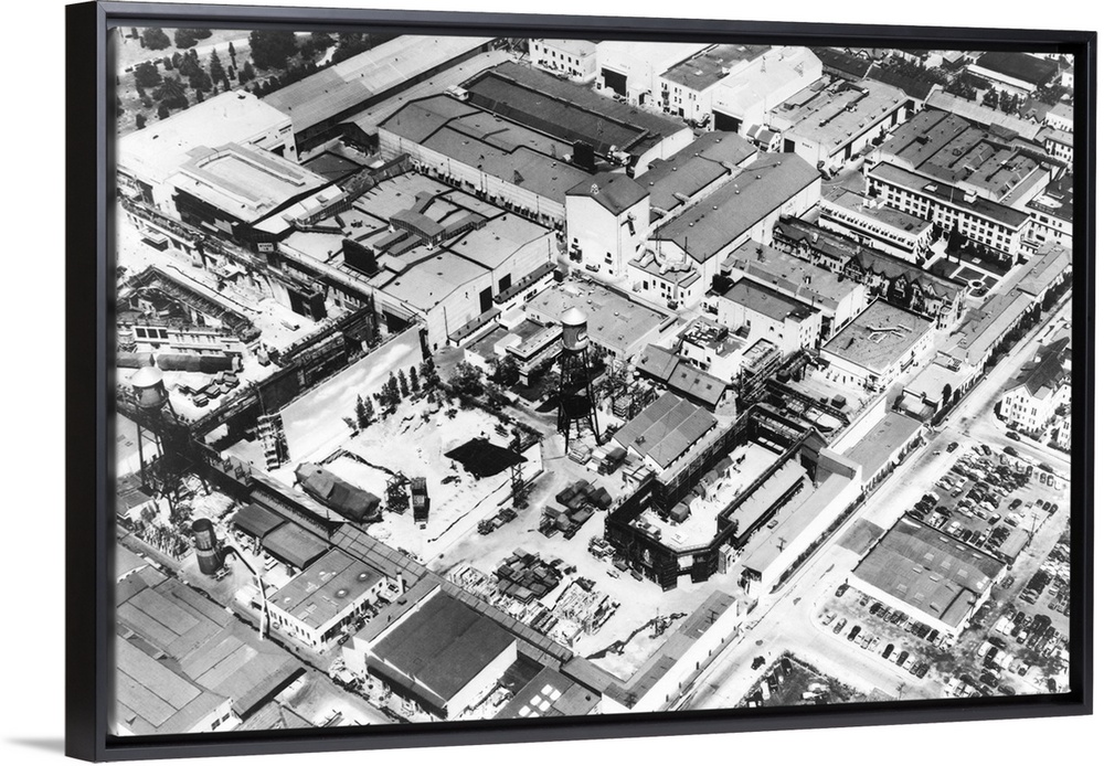 <p>Aerial view of Paramount Studios in Hollywood, c. 1947. The lot covers 48 acres and employed thousands with an annual expenditure $40 million, for payroll, materials, and services.</p>