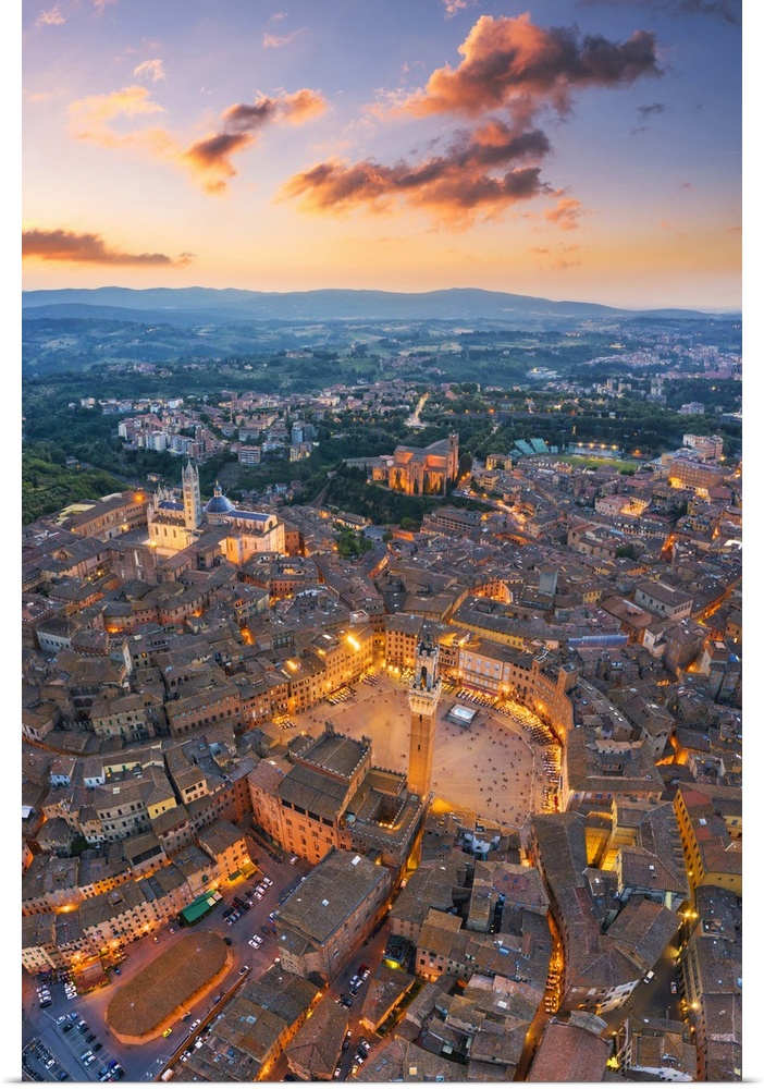 <p>Aerial view of Piazza Del Campo and Siena old town. Siena, Tuscany, Italy, Europe</p>