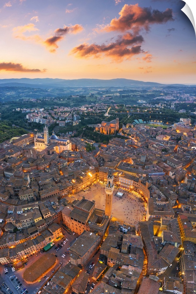 <p>Aerial view of Piazza Del Campo and Siena old town. Siena, Tuscany, Italy, Europe</p>