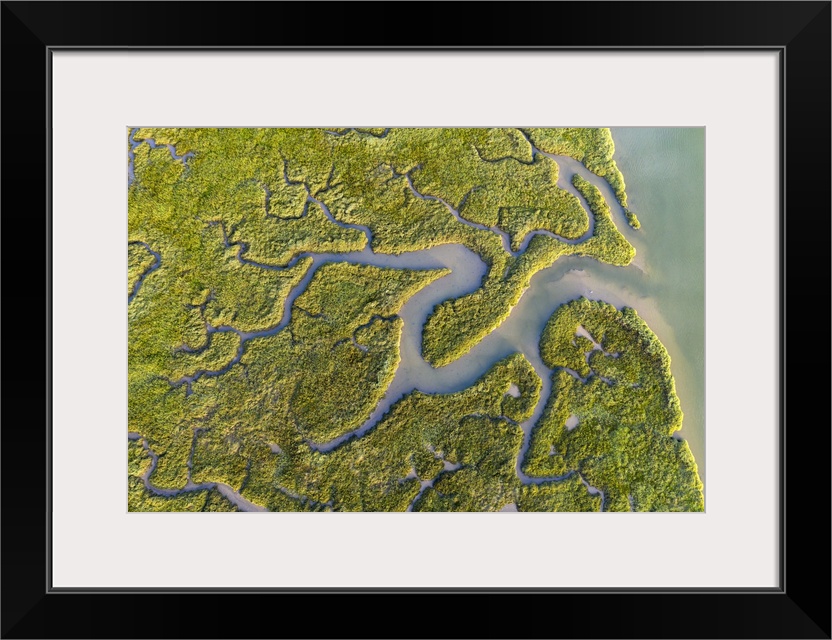 <p>Aerial view of saltmarshes on the Camel Estuary near Wadebridge, Cornwall, England. Summer (August) 2020.</p>
