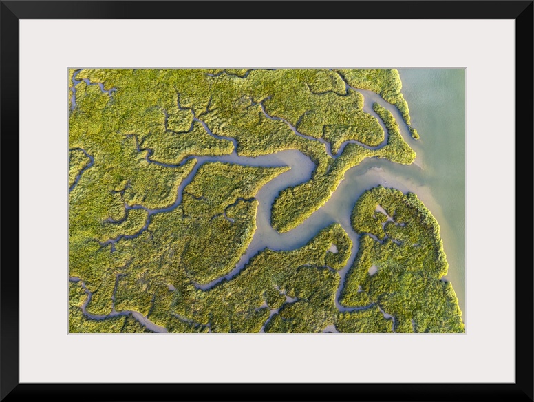 <p>Aerial view of saltmarshes on the Camel Estuary near Wadebridge, Cornwall, England. Summer (August) 2020.</p>