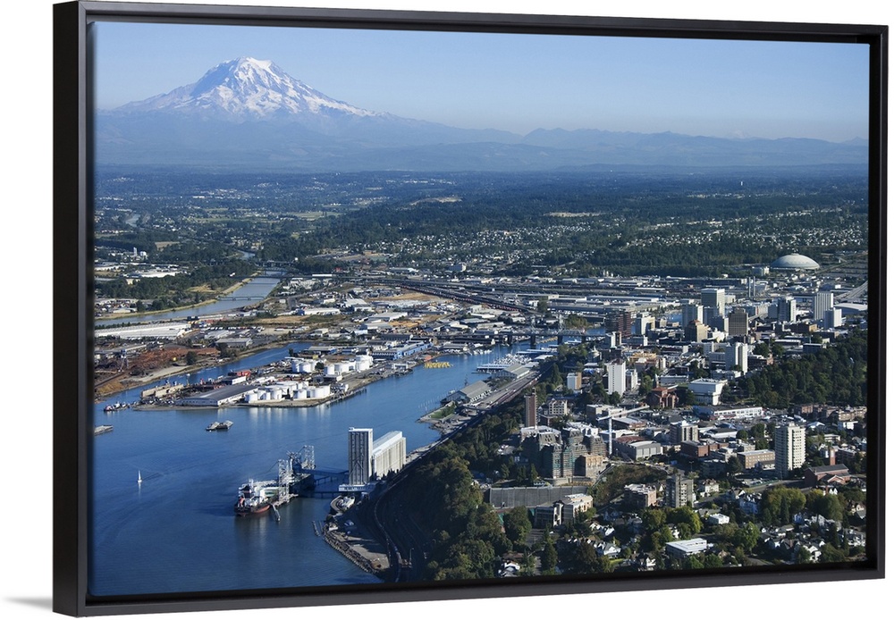 <p>Aerial view of Tacoma and Mount Rainier</p>
