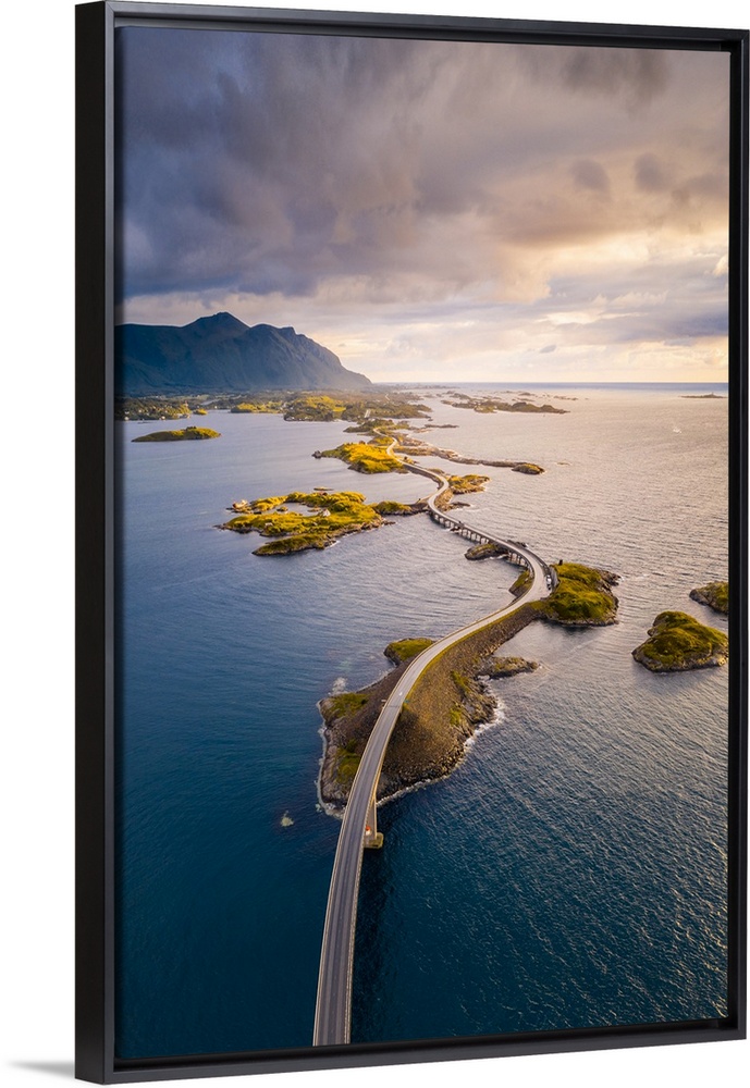 <p>Aerial view of the Atlantic Ocean Road at sunset, More og Romsdal, Norway</p>