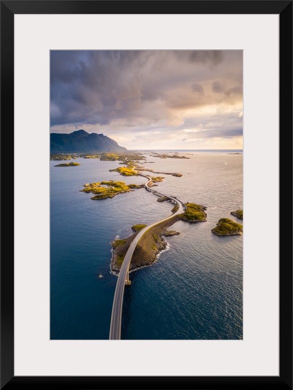 <p>Aerial view of the Atlantic Ocean Road at sunset, More og Romsdal, Norway</p>